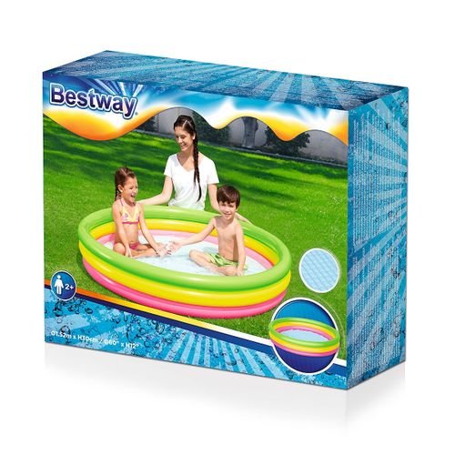 Piscine gonflable Bestway 51104 d’été   se compose de trois anneaux. Chacun d’eux est décoré dans une certaine couleur: vert, jaune, rose, ce qui n’affectera que positivement l’humeur de l’enfant. Le fond gonflable rendra le séjour dans la piscine plus confortable et apportera une sécurité supplémentaire en nageant.
