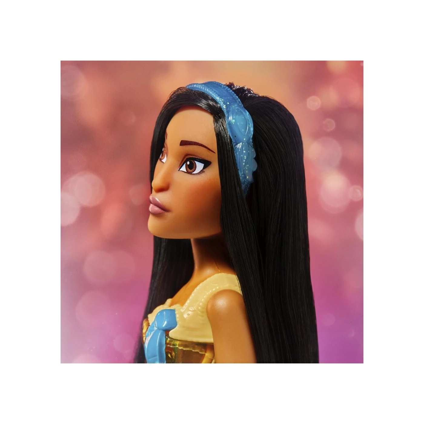 Disney Princess Royal Shimmer avec Pocahontas! Une belle poupée avec des mains et des jambes en mouvement, des cheveux que vous pouvez peigner, une couronne amovible et une robe confortable avec des détails étincelants! Inventez des aventures magiques et laissez libre cours à votre créativité – ou créez des scènes de films!