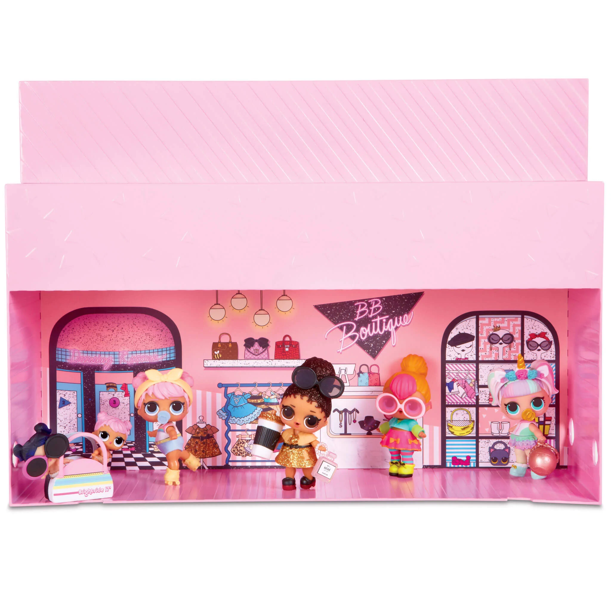 LOL Surprise Mini Shops Playset est un set de jeu, présentoir et étui de transport 3 en 1! Emmenez vos poupées en ville! Les aires de jeux comprennent un café chic, une boutique de mode et une pizzeria! L’écran contient 55+ poupées et accessoires. Comprend une poupée exclusive LOL Surprise.
