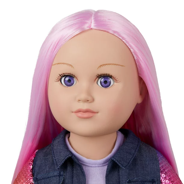 Ma vie en tant que poupée Amora Posable de 18 pouces, cheveux roses, yeux violets: