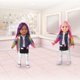 • La tenue de poupée comprend un t-shirt avec une sérigraphie cœur, une veste en jean avec des manches à paillettes arc-en-ciel, des leggings argentés, des plats lilas, un demi-tablier, un peigne, une paire de ciseaux, une cravate et deux tubes de couleur de cheveux simulée.